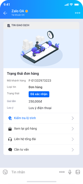 Nhắn tin là tính năng tương tác hai chiều giữa Zalo OA của doanh nghiệp và người dùng Zalo*.